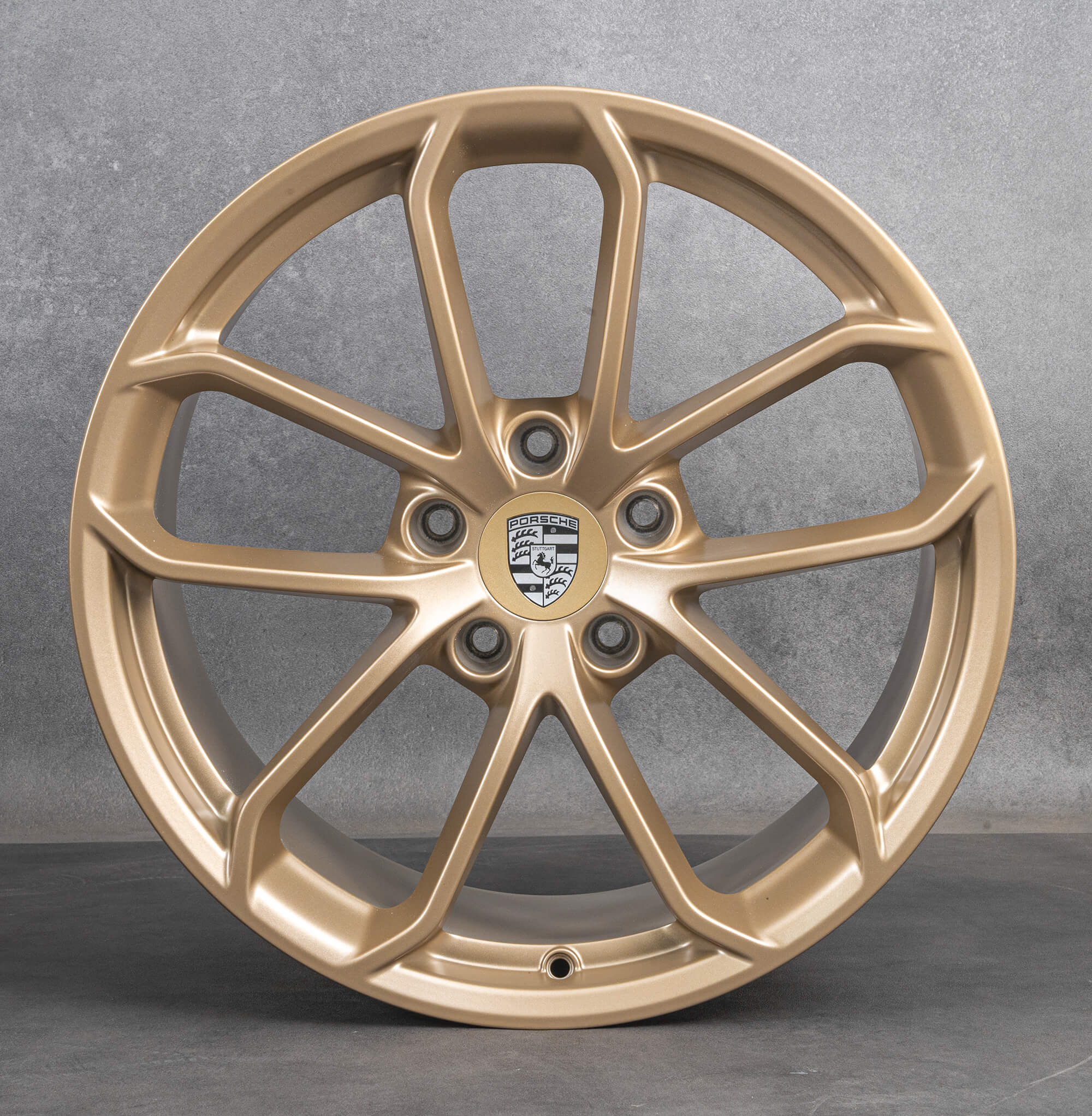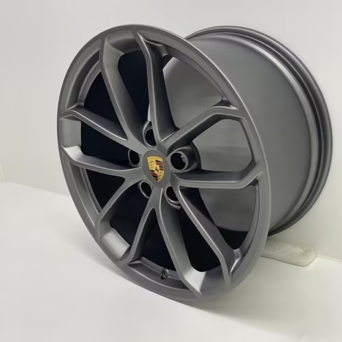 The spokes of the wheel are often intricately crafted, enhancing the overall aesthetics and potentially optimizing airflow for improved brake cooling. The center cap may proudly showcase the Porsche emblem, adding a distinctive brand element. Furthermore, the wheel could boast either a polished or matte finish, depending on the design and the desired visual impact.