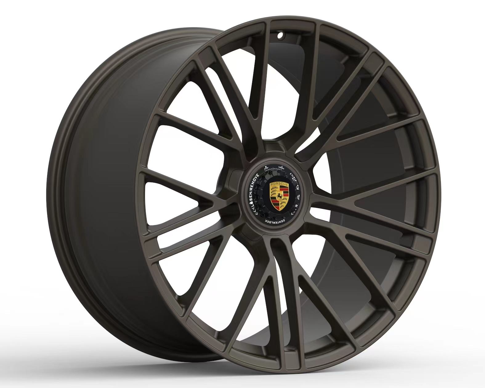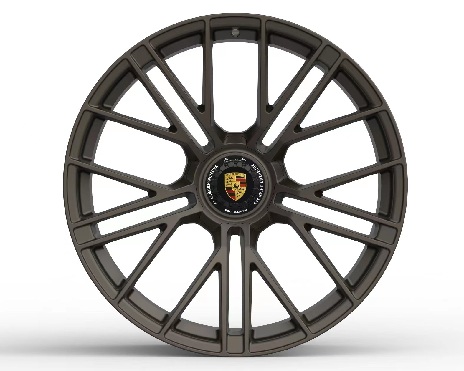 The spokes of the wheel are often intricately crafted, enhancing the overall aesthetics and potentially optimizing airflow for improved brake cooling. The center cap may proudly showcase the Porsche emblem, adding a distinctive brand element. Furthermore, the wheel could boast either a polished or matte finish, depending on the design and the desired visual impact.